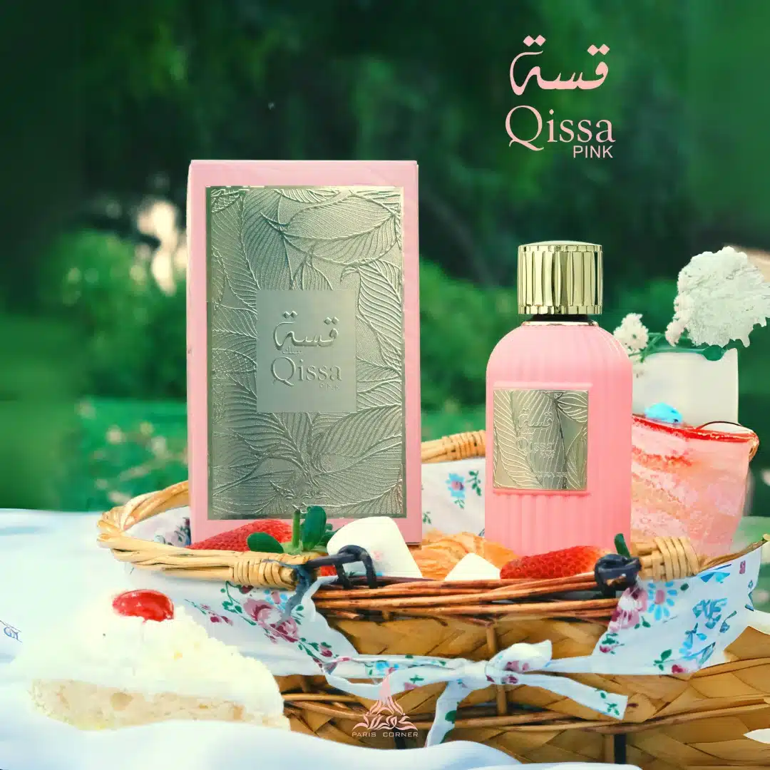 Qissa Pink es un perfume dulce, suave y muy femenino. Se abre con notas jugosas de manzana y coco, que aportan frescura frutal y un toque ligeramente tropical. En el corazón se despliega un bouquet floral compuesto por heliotropo, violeta, jazmín y rosa, añadiendo delicadeza y elegancia al aroma. La base cálida combina vainilla, maderas como cedro y sándalo, pachulí y cachemira, creando un fondo cremoso, dulce y ligeramente empolvado que prolonga la duración de la fragancia.
