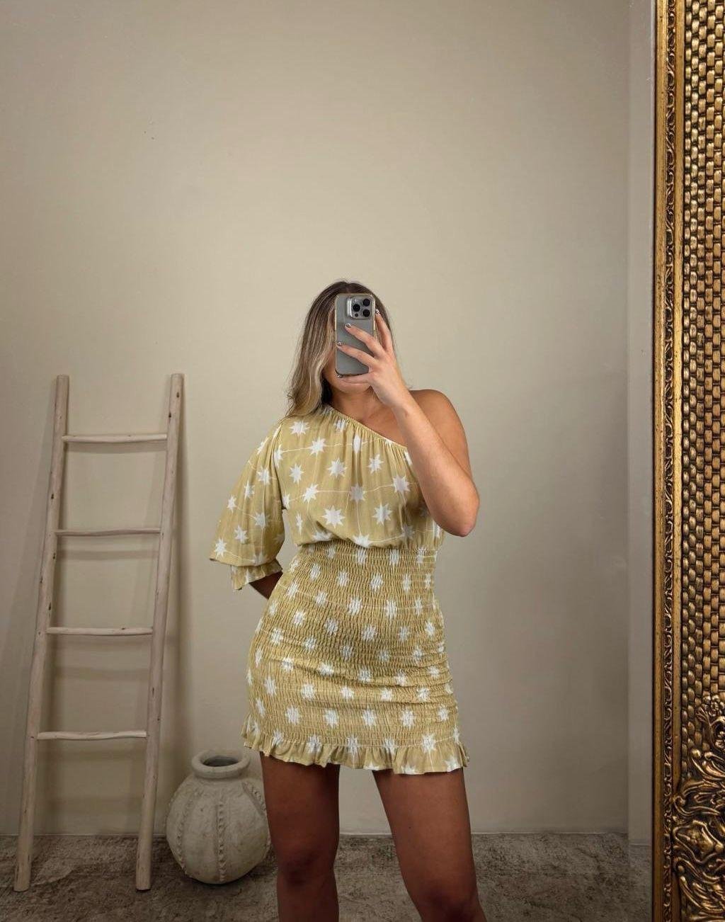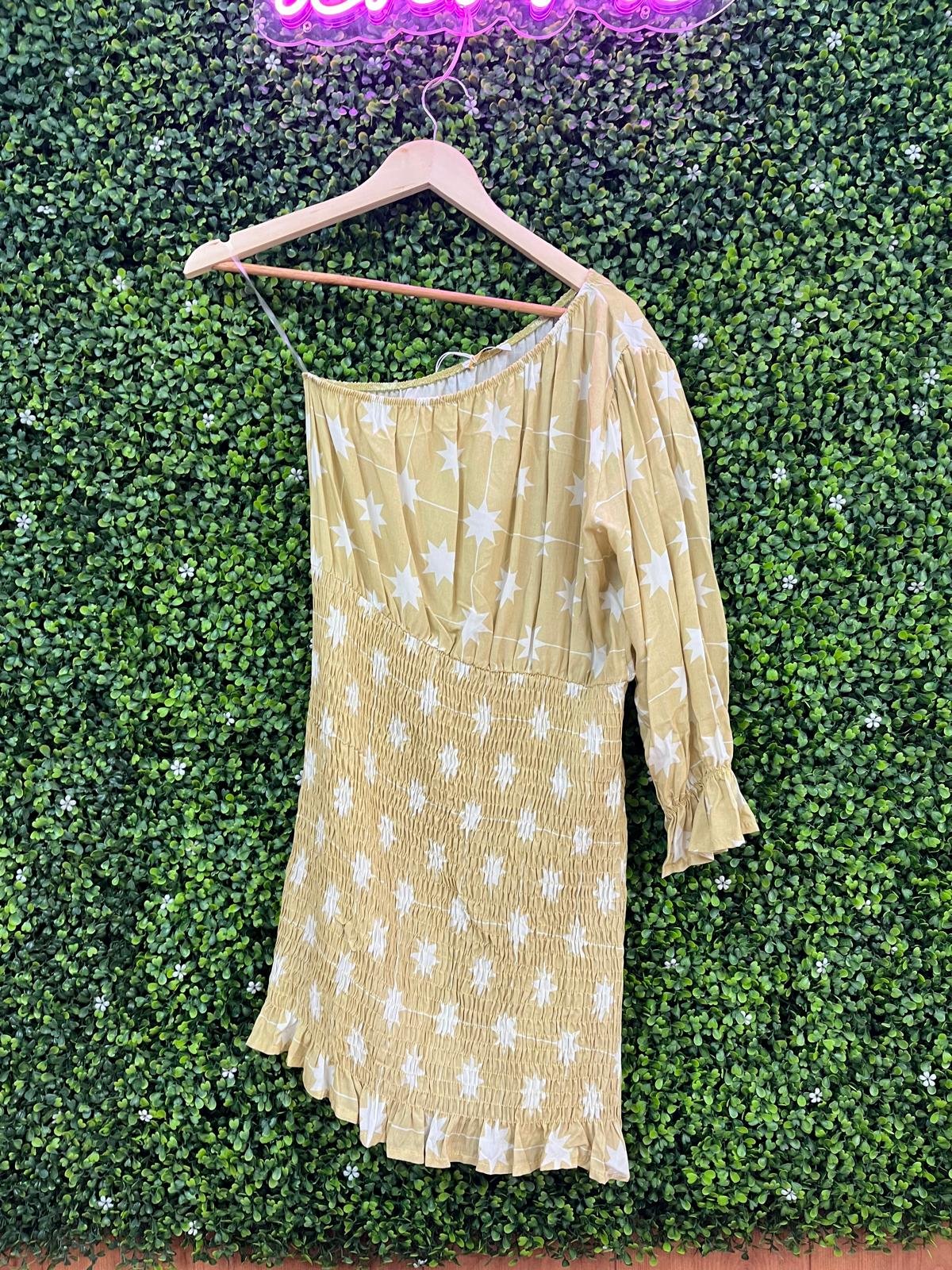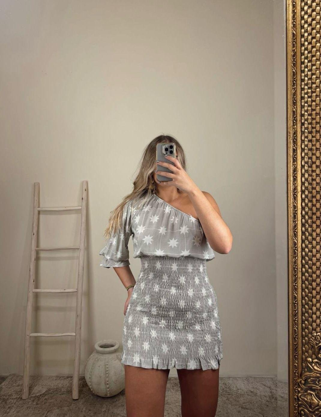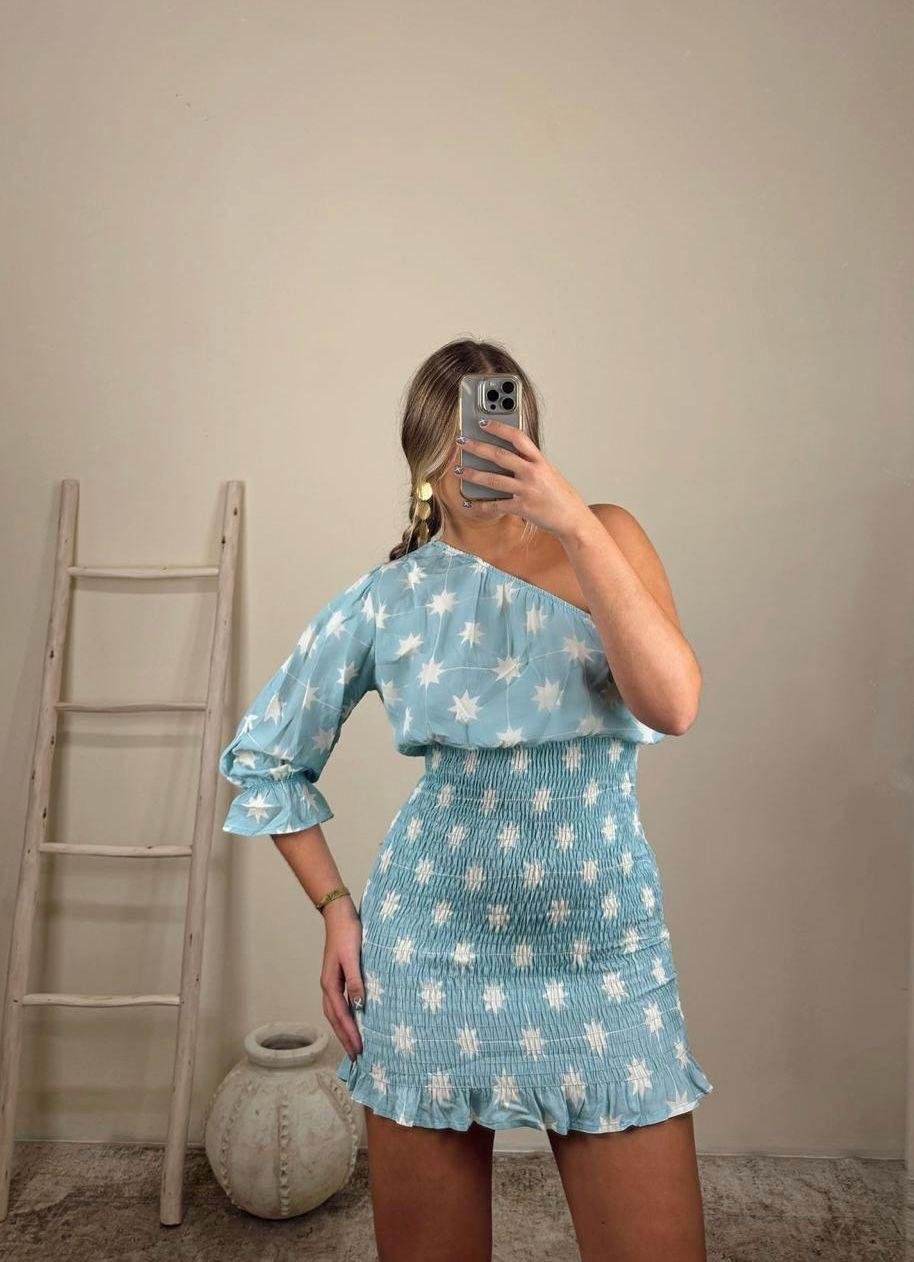 Este vestido asimétrico con estampado de estrellas destaca por su diseño moderno y atrevido. Su corte irregular aporta movimiento y personalidad, mientras que las estrellas añaden un toque mágico y lleno de encanto. Confeccionado en un tejido cómodo y favorecedor, se adapta bien a diferentes siluetas y es ideal para eventos nocturnos, salidas especiales o para quienes buscan una prenda que combine estilo y originalidad. Un vestido pensado para brillar en cualquier ocasión.